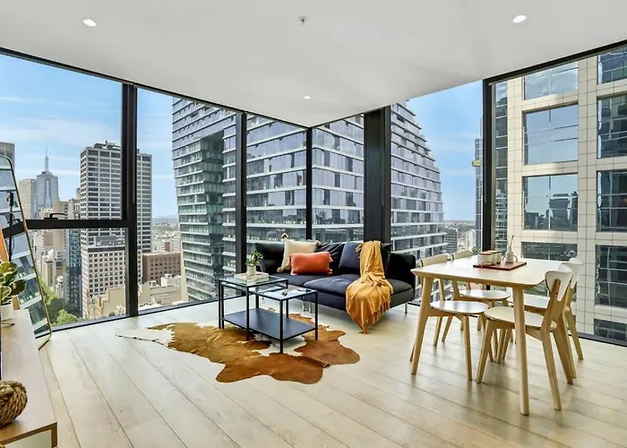 ベッドルーム2室のCollins House - Melbourne Cbd Amazing Viewアパートメントはメルボルンの中心に位置し、Sea Life メルボルン水族館から徒歩で5分です。